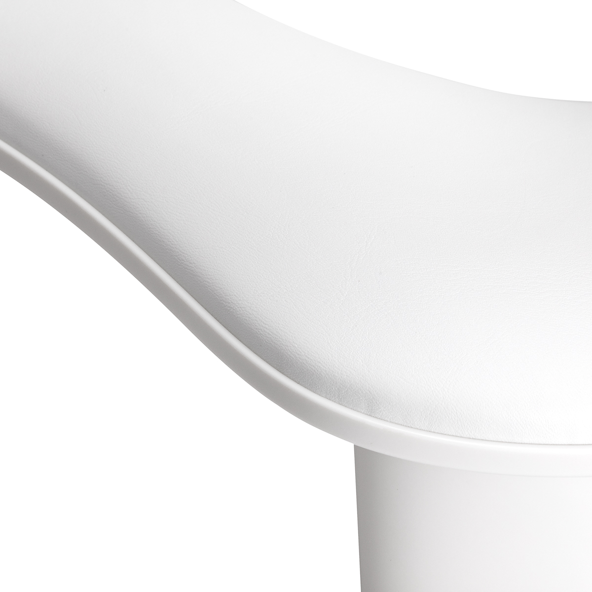 Die optimale Höhe und der Winkel des Stativs gewährleisten eine bequeme Position für Kunde und Stylist. Die korrekte Haltung des Stylisten minimiert die Belastung der Wirbelsäule, reduziert effektiv Rückenschmerzen und bietet dem Kunden mehr Komfort und Entspannung. Die speziell entwickelte Armlehne ermöglicht es, beide Hände gleichzeitig bequem zu positionieren, was die Arbeit des Stylisten erleichtert und den Komfort während der Behandlung erhöht. Langlebig und leicht zu reinigen. Der Momo Croissant-Ständer ist aus hochwertigen Materialien gefertigt, was seine Langlebigkeit und einfache Reinigung gewährleistet. Das weiche, mit Kunstleder bezogene Kissen bietet den Kunden maximalen Komfort während der Behandlung, und der stabile Kunststoffrahmen erhöht die Stabilität der Konstruktion. Zusätzlich verhindern Silikonelemente an den Beinen ein Verrutschen des Ständers und schützen die Oberfläche vor Kratzern, wodurch die Stabilität gewährleistet wird. Verwenden Sie zur Reinigung des Ständers keine acetonhaltigen Produkte. Daten: Farbe: Weißtöne; Bezugsmaterial: Kunstleder; Fuß: Kunststoff