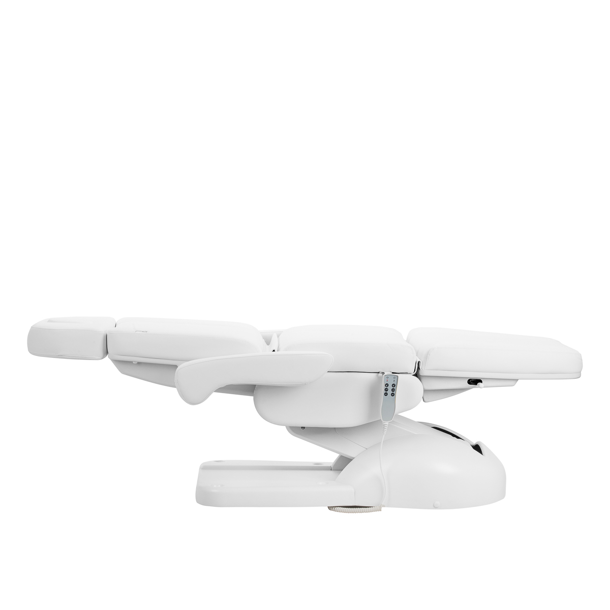 Der Stuhl wurde speziell für Podologen entwickelt. Die geteilte Fußstütze ermöglicht die unabhängige Einstellung jedes Beins und erleichtert so eine präzise und komfortable Behandlung. Der Winkel jeder Seite lässt sich manuell einstellen, wodurch die Position schnell an die Bedürfnisse von Patient und Behandler angepasst werden kann. Funktionen, die die Behandlung vereinfachen: Die Sitzhöhe ist von 60 cm bis 90 cm verstellbar, sodass die Position leicht an die Körpergröße von Patient und Behandler angepasst werden kann. Vollständig ausgezogen erreicht der Stuhl eine Länge von 2 Metern und bietet so auch bei Behandlungen in liegender Position eine komfortable Körperunterstützung. Dank dieser Eigenschaften eignet sich das Gerät für eine Vielzahl von Behandlungen, sowohl kosmetische als auch spezialisierte, und gewährleistet ergonomisches Arbeiten sowie einen hohen Servicestandard.