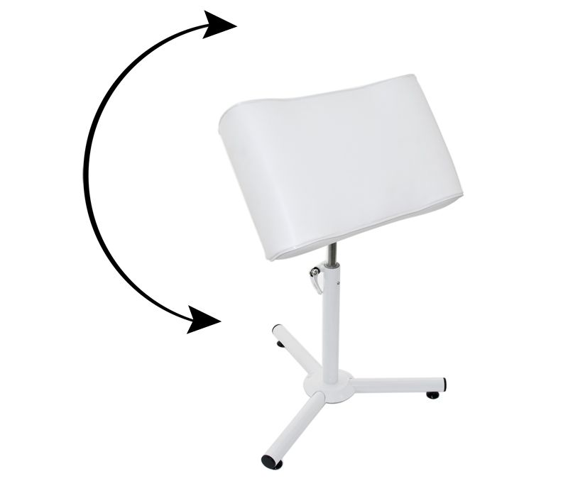 Die Fußstütze ist höhenverstellbar und verfügt über einen einstellbaren Neigungswinkel des Kissens. Dadurch eignet sie sich für alle Arten von Behandlungen, nicht nur für Pediküren. Die große, profilierte Polsterung bietet den Beinen optimalen Halt.