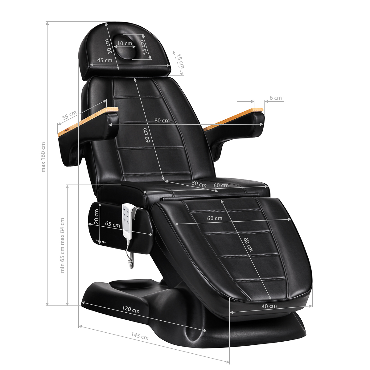 Informationen über Elektrischer Kosmetikstuhl Sillon Lux 273B, 3 Aktuatoren, Schwarz mit Artikelnummer 147259