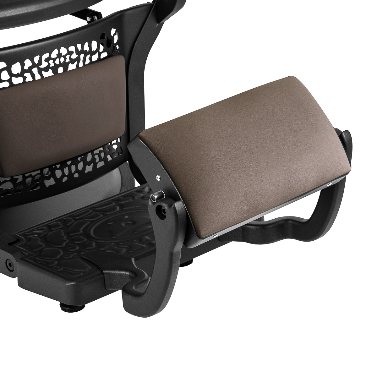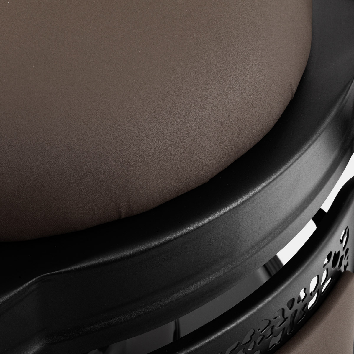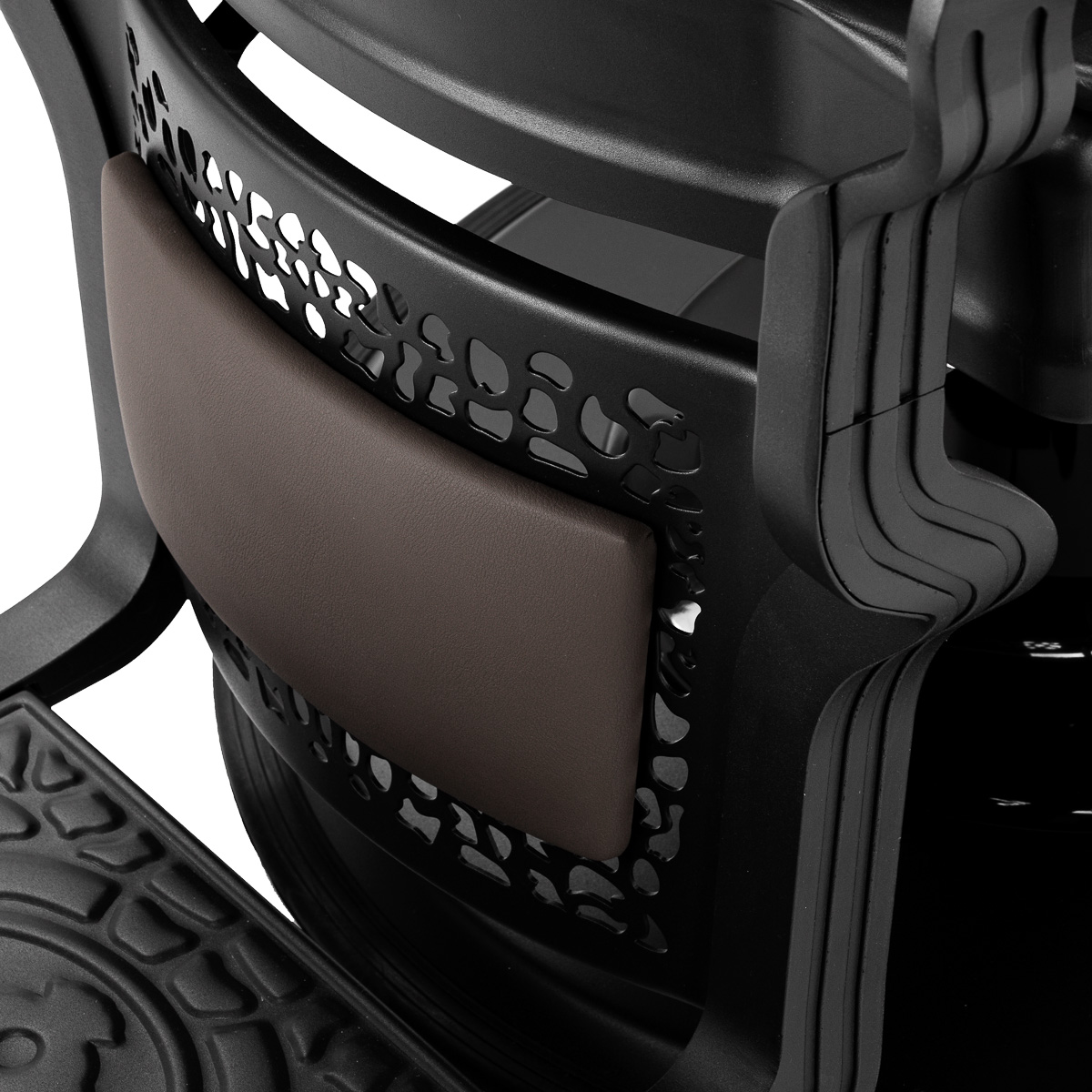 Ein bequemer, mit Schaumstoff gefüllter Sitz garantiert dem Kunden Komfort bei einer Vielzahl von Behandlungen. Die konturierte Rückenlehne ermöglicht eine bequeme Position und bietet hervorragende Rückenunterstützung, was insbesondere bei längeren Behandlungen wichtig ist. Die Ausstattung des Stuhls mit einem Volldrehmechanismus macht das Arbeiten effektiver und komfortabler. Gepolsterte Armlehnen in optimaler Höhe sorgen für eine korrekte Schulterpositionierung und verhindern, dass der Kunde den Kopf in die Schultern legt oder eine gekrümmte Haltung einnimmt. Dies erleichtert präzise Behandlungen erheblich. Der Handtuchhalter unter der Armlehne steigert die Arbeitseffizienz deutlich. Der Spalt zwischen Rückenlehne und Sitzfläche erleichtert die Reinigung des Salons, ermöglicht die effiziente Haarentfernung an jeder Stelle des Stuhls und eine schnellere Vorbereitung des Arbeitsplatzes für den nächsten Kunden.