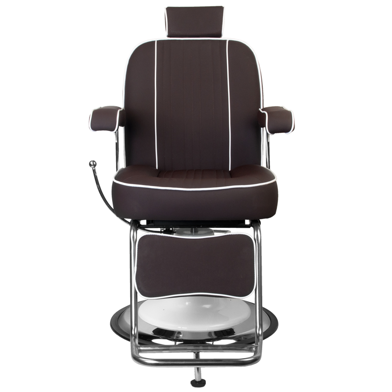Dank des breiten Fußkreuzes ist Stabilität garantiert. Die Kopfstütze lässt sich mühelos verstellen, sodass jeder Kunde ein individuelles Erlebnis genießt. Genießen Sie die Schönheit dieses eleganten, braunen Möbelstücks und werten Sie das Ambiente Ihres Salons auf.