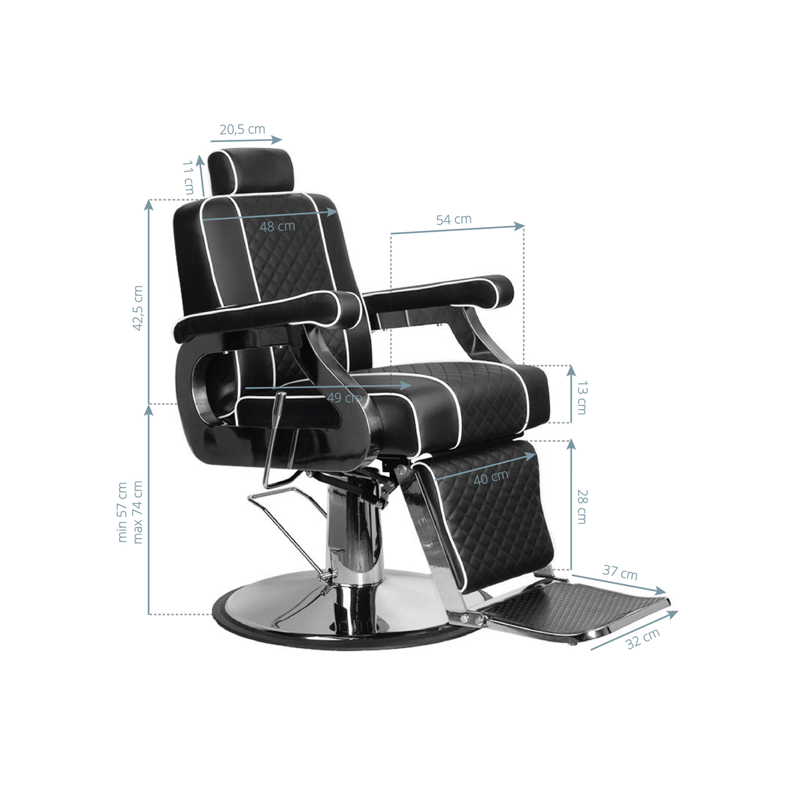 Der komfortable Sitz ist mit hochwertigem Öko-Leder bezogen und verleiht jedem Besuch einen Hauch von Luxus. Das breite Chromgestell garantiert Stabilität während des Salonbetriebs und sorgt so für eine reibungslose und komfortable Behandlung Ihrer Kunden.