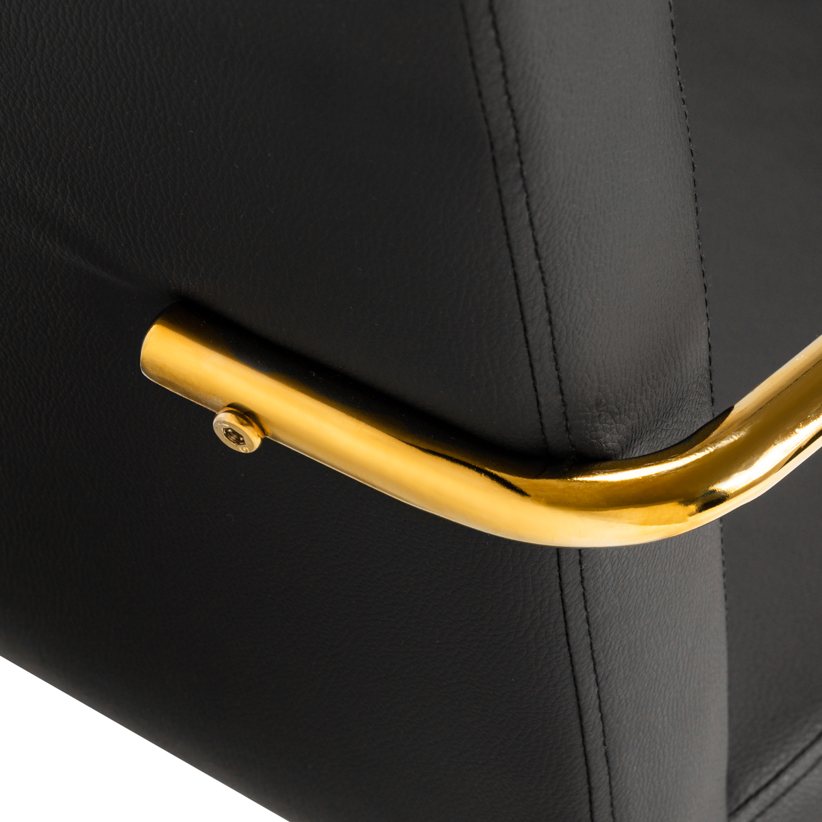 Die effiziente Gasdruckfeder ermöglicht eine einfache und stufenlose Verstellung der Sitzhöhe zwischen 51 und 60 cm. So lässt sich das Möbelstück optimal an individuelle Bedürfnisse und Anwendungsbereiche anpassen und bietet hohen Komfort – sowohl beim Schminken und Augenbrauenstyling als auch bei anderen Tätigkeiten. Der Drehmechanismus optimiert Arbeitseffizienz und Komfort. Die Metallarmlehnen haben die optimale Höhe für eine korrekte Schulterposition. Das minimalistische Design sorgt für hohen Bedienkomfort. Der angenehme Kunstlederbezug in Schwarz verleiht dem Möbelstück einen einzigartigen Charakter. Die elegante Verarbeitung macht es zu einem echten Blickfang. Das goldfarbene Gestell unterstreicht die Eleganz und harmoniert perfekt mit den schlichten Formen. Dank der funktionalen Rollen lässt sich der Stuhl leicht bewegen und so mühelos im Salon versetzen. Die ästhetische Verarbeitung, der hohe Sitzkomfort und die ergonomisch geformte Rückenlehne sorgen dafür, dass dieser Stuhl selbst höchsten Ansprüchen gerecht wird. Die Produktabmessungen sind auf dem Foto angegeben. Die goldenen Elemente sind lackiert. Mechanische Beschädigungen der Lackierung sind von der Reklamation ausgeschlossen. Daten: Antrieb: Gasdruckfeder; Bezugsmaterial: Kunstleder; Bezugsfarbe: Schwarztöne; Gestellfarbe: Goldtöne