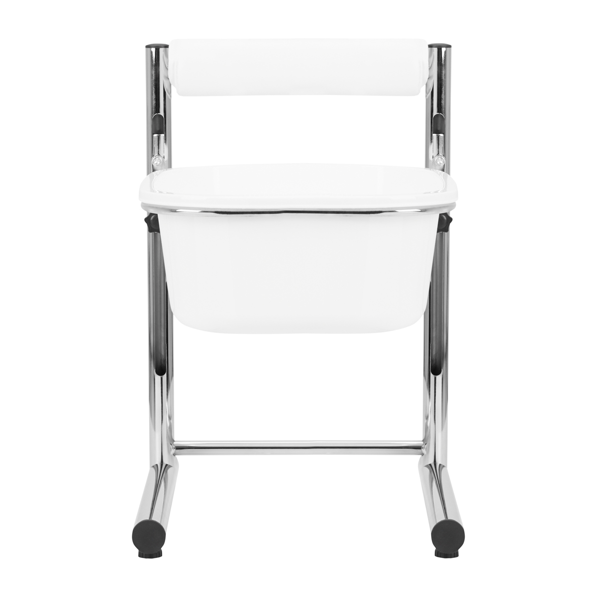 Das Fußbad dient zum Einweichen der Füße vor der Pediküre. Es ist sehr komfortabel für Kundin und Pediküristin und verfügt über eine stufenlos verstellbare Höhe. Die Höhe des Beckens lässt sich an jede Stuhlhöhe anpassen. An der Rückseite des Fußbads befindet sich eine weiche Polsterung, auf der die Kundin ihr Bein ablegen kann. Technische Daten: Höhe: 550 mm, Breite: 380 mm, Länge: 470 mm, Höhenverstellbereich des Beckens: ca. 270 mm, Fassungsvermögen und Abmessungen des Beckens: ca. 5 l, 40 x 35 x 15 cm, Gewicht: 6,1 kg