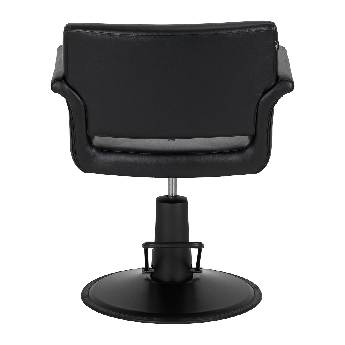 Der Friseurstuhl Gabbiano Lucca vereint moderne Schlichtheit mit dem Komfort des täglichen Gebrauchs. Der runde, schwarze Fuß sorgt für Stabilität, während der Bezug aus Kunstleder in Schwarztönen für Komfort während der Behandlungen sorgt. Langlebige, feuchtigkeitsbeständige Materialien machen dieses Modell nicht nur komfortabel, sondern auch besonders pflegeleicht und behalten sein ästhetisches Aussehen über Jahre hinweg. Die markanten, nach außen geschwungenen Armlehnen verleihen dem Stuhl eine elegante Optik und unterstützen gleichzeitig eine bequeme Position für den Kunden. Dieses vielseitige Modell fügt sich perfekt in moderne wie auch klassische Interieurs ein und unterstreicht den professionellen Stil des Salons.