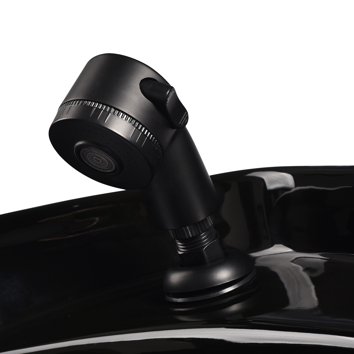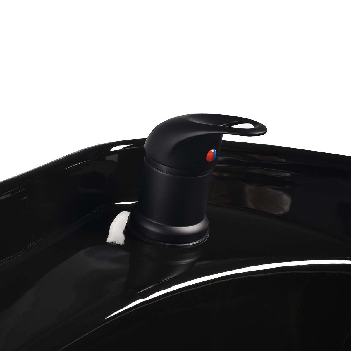 Die optimale Tiefe des weißen Keramikwaschbeckens verhindert übermäßiges Spritzen von Wasser oder Produkten während der Behandlungen. Dies ermöglicht eine komfortable und effektive Durchführung einer Vielzahl von Dienstleistungen. Der Winkel des Beckens ist verstellbar und lässt sich so optimal an individuelle Bedürfnisse anpassen. Die hohe Qualität der verwendeten Materialien macht das Waschbecken langlebig, farbbeständig, kratzfest und sehr leicht zu reinigen. Ein ergonomisch geformter Rand und eine geneigte Rückenlehne bieten Halt und Komfort beim Haarewaschen. Dank der angenehmen schwarzen Kunststoffabdeckung spürt der Kunde nicht die Kälte der Keramikoberfläche.