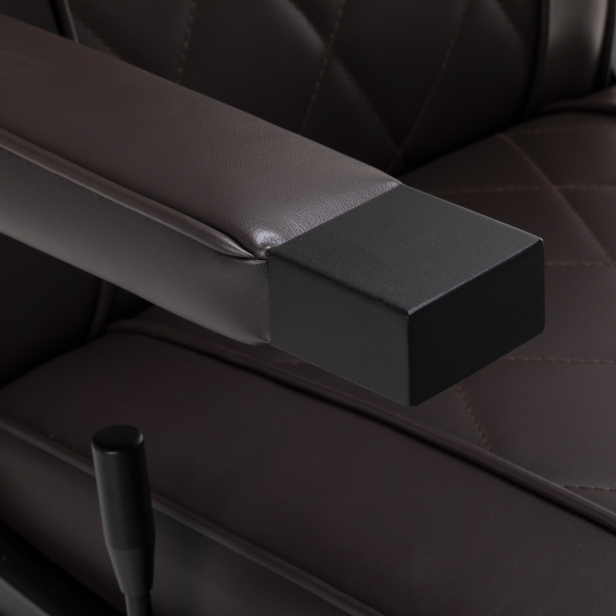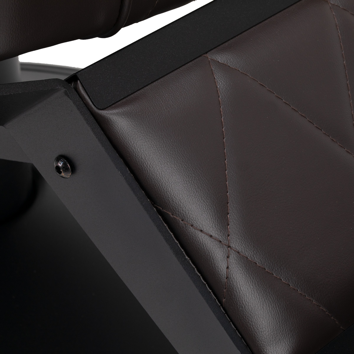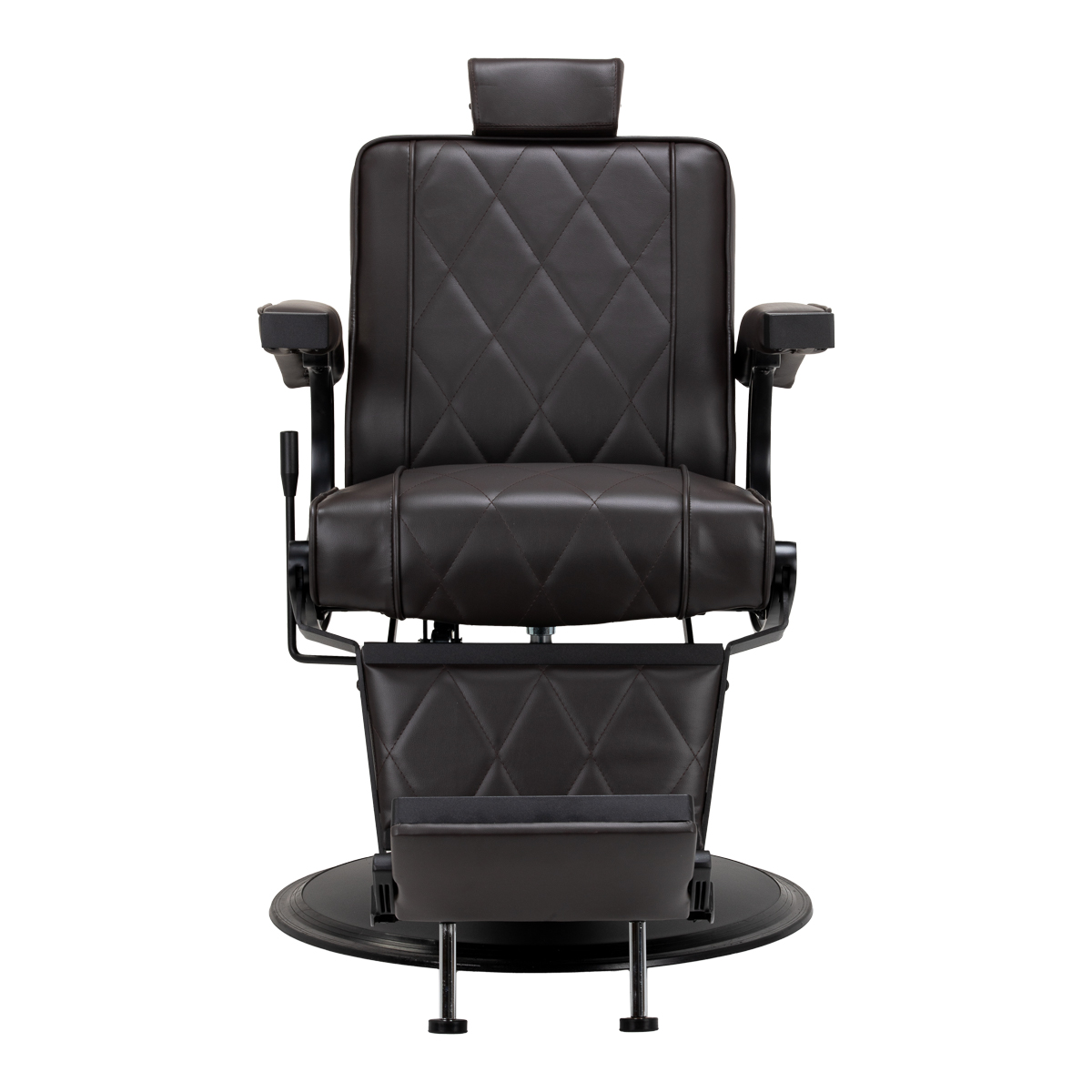 Die stabile, runde Fußkonstruktion des Stuhls gewährleistet Stabilität und hervorragenden Sitzkomfort. Die Sitzpolsterung aus formbeständigem Schaumstoff und der Bezug aus weichem Kunstleder mit matter Oberfläche garantieren Langlebigkeit und Komfort auch bei längerem Gebrauch. Stilvolle Ziernähte verleihen dem Stuhl Charakter und erinnern an Automobildesign, was seine elegante Optik unterstreicht. Diese Eigenschaft macht den Stuhl außerdem feuchtigkeitsbeständig, langlebig und leicht zu reinigen. Die braunen Polster verleihen dem Stuhl einen einzigartigen Charakter, und sein minimalistischer Stil sorgt dafür, dass er sich nahtlos in die Einrichtung jedes Friseursalons einfügt.