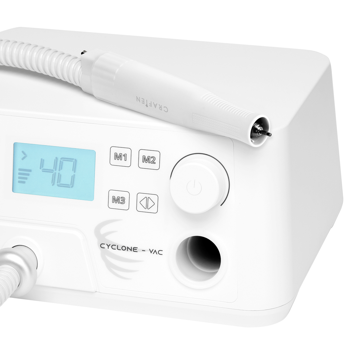 Ausreichender Atemschutz ist der Schlüssel zu verantwortungsvollem und sicherem Arbeiten als Podologe und zur Einhaltung hoher Hygienestandards in der Praxis. Die hohe Saugleistung des Geräts macht es ideal zum Aufsaugen von Staub, der bei Behandlungen entsteht. Die Saugleistung lässt sich in fünf Stufen einstellen und bei Bedarf deaktivieren.