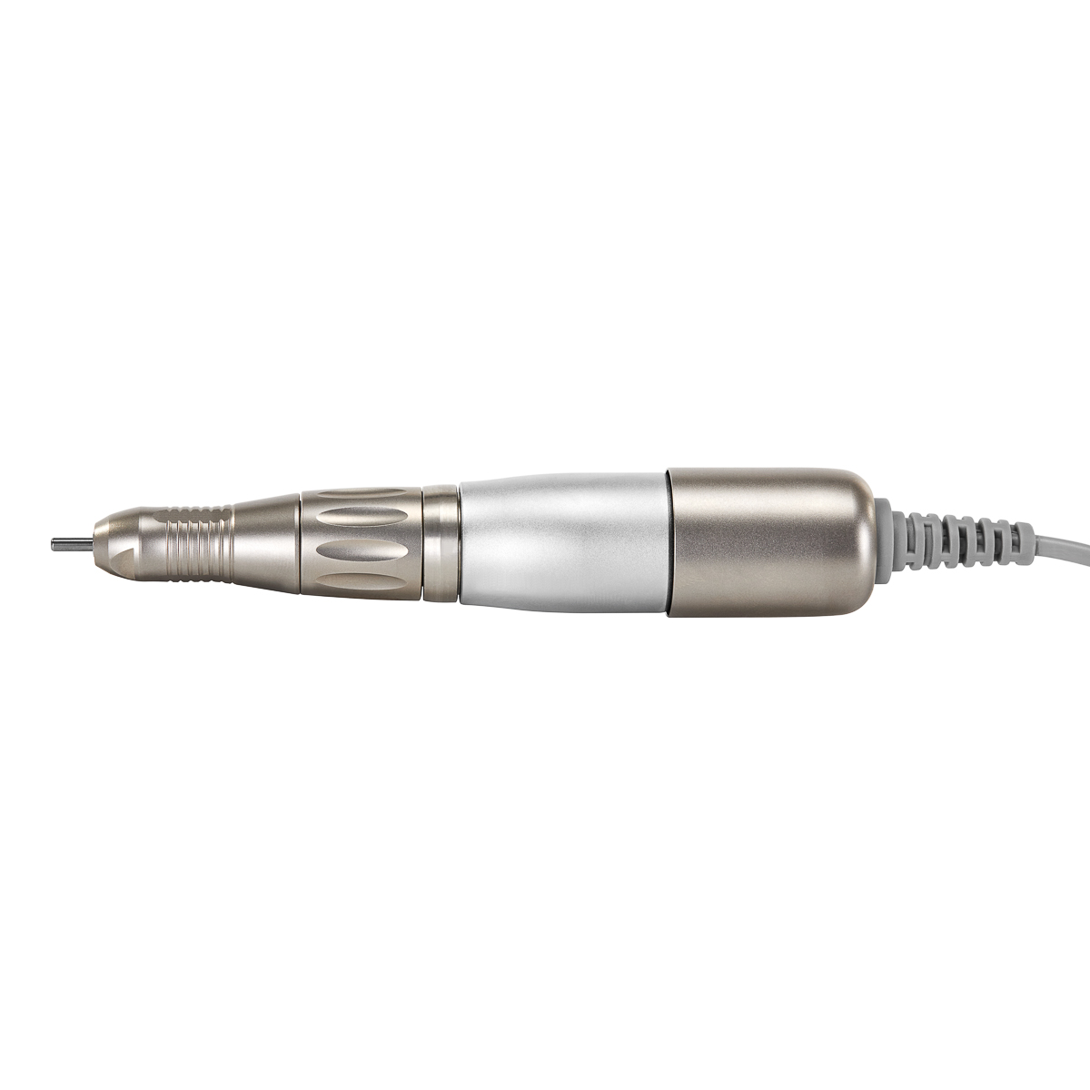 Der schlanke Kopf liegt gut in der Hand und ermöglicht komfortables und präzises Arbeiten. Dank der optimalen Balance und der deutlichen Vibrationsreduzierung ermüdet die Hand nicht übermäßig, sodass auch stundenlange Behandlungen möglich sind. Das Gerät ist mit einem benutzerfreundlichen Twist-Lock-System ausgestattet, das einen schnellen und einfachen Wechsel der Nagelfräseraufsätze ermöglicht. Die Bedienung des Geräts ist daher außergewöhnlich einfach und intuitiv, was auch anspruchsvollere Anwender zu schätzen wissen werden.