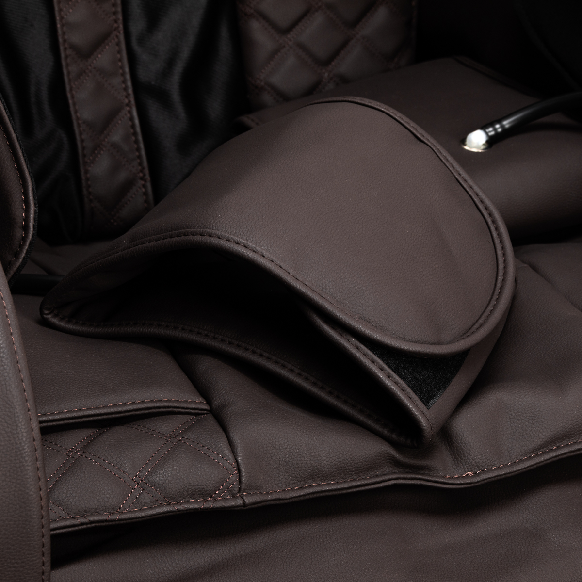 Der Stuhl ist mit Tasten an der linken Armlehne ausgestattet, die eine komfortable Steuerung der Einstellungen ermöglichen. Mit der integrierten Fernbedienung können Sie während der Behandlung jederzeit einige Massageparameter, die Stuhlposition, die Fußmassage oder die Zero-Gravity-Funktion anpassen. Für noch mehr Komfort verfügt der Stuhl über einen USB-Anschluss, mit dem Sie Ihr Handy während der Benutzung aufladen können.