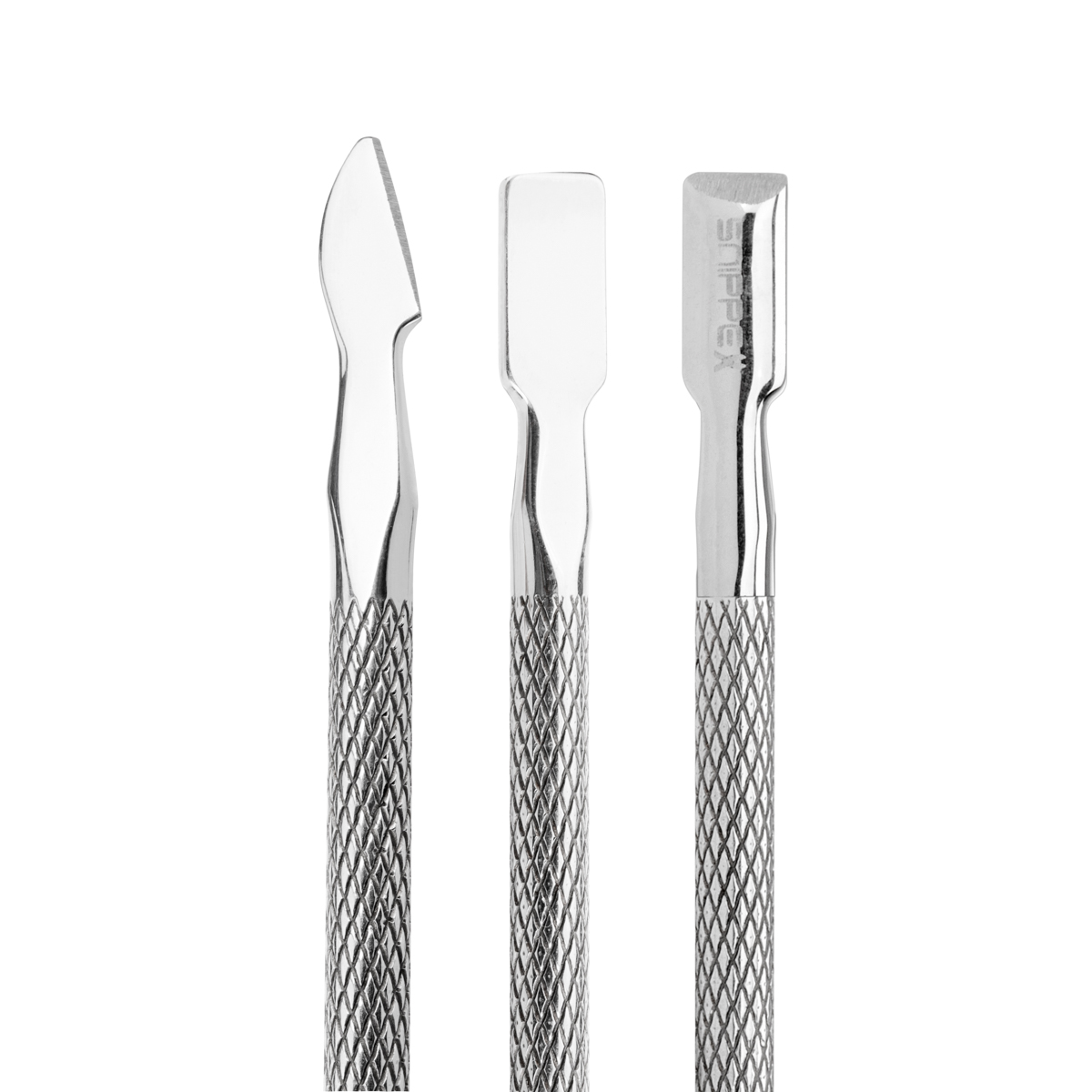 Die multifunktionale, doppelseitige Hufzange von SNIPPEX mit polierter Oberfläche ist ein universelles Werkzeug, das für Maniküre- und Pedikürebehandlungen sowohl im professionellen Kosmetikstudio als auch zu Hause verwendet werden kann. Aufgrund der Verletzungsgefahr ist dabei besondere Vorsicht geboten. Mit diesem Werkzeug können Sie die Nagelhaut mühelos zurückschieben und Hybridlack entfernen.
